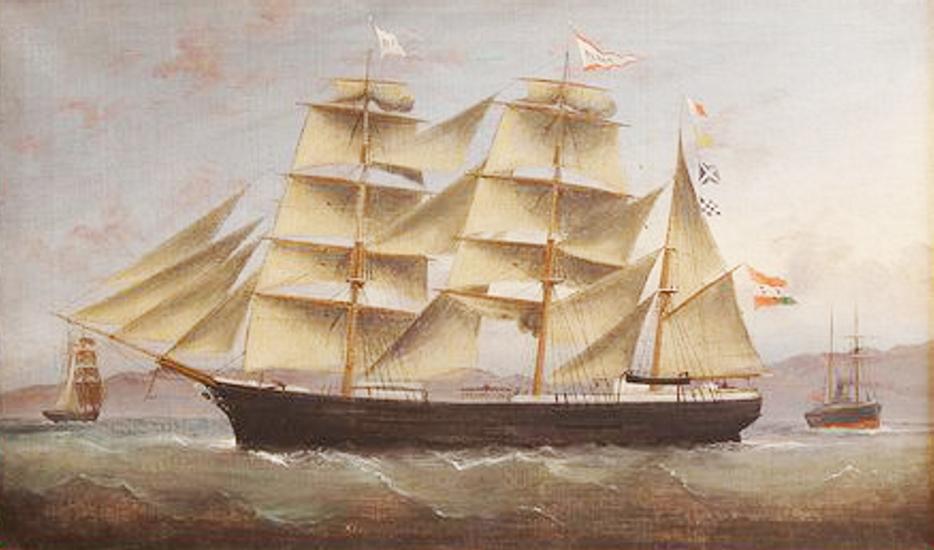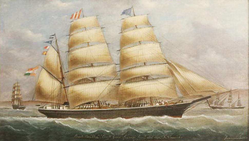 Barque Cainan. Shipowner: Pelješac Shipping Company 1867. Author of the painting: Bazilije Ivanković