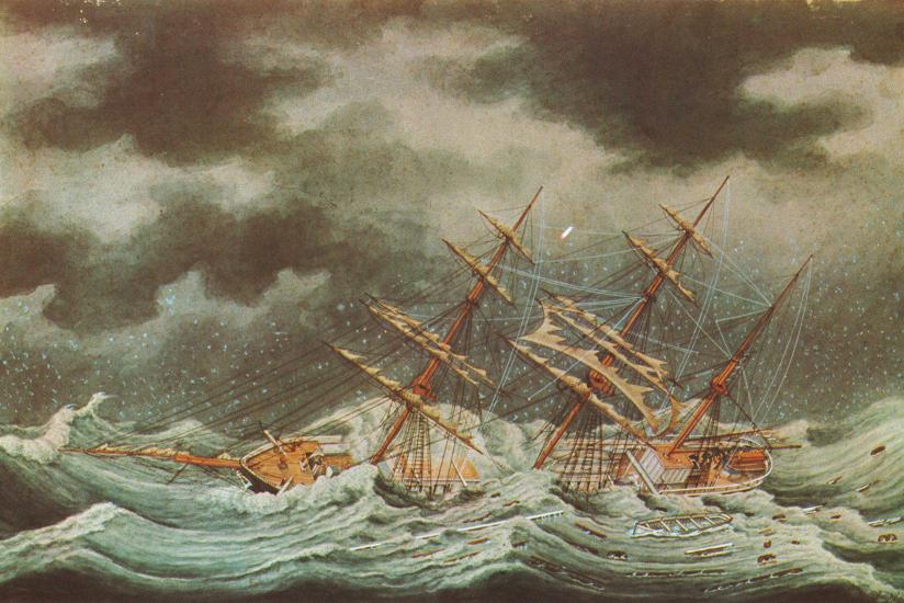 Barque Bakran. Shipowner: Croatian Shipping Company in Bakar, Bakar 1878, 639 tons, captains Nikola Mikuličić and Martin Pavletić. On his way to the USA, near Marseille, it was hit by a hurricane on August 25 and 26, 1887