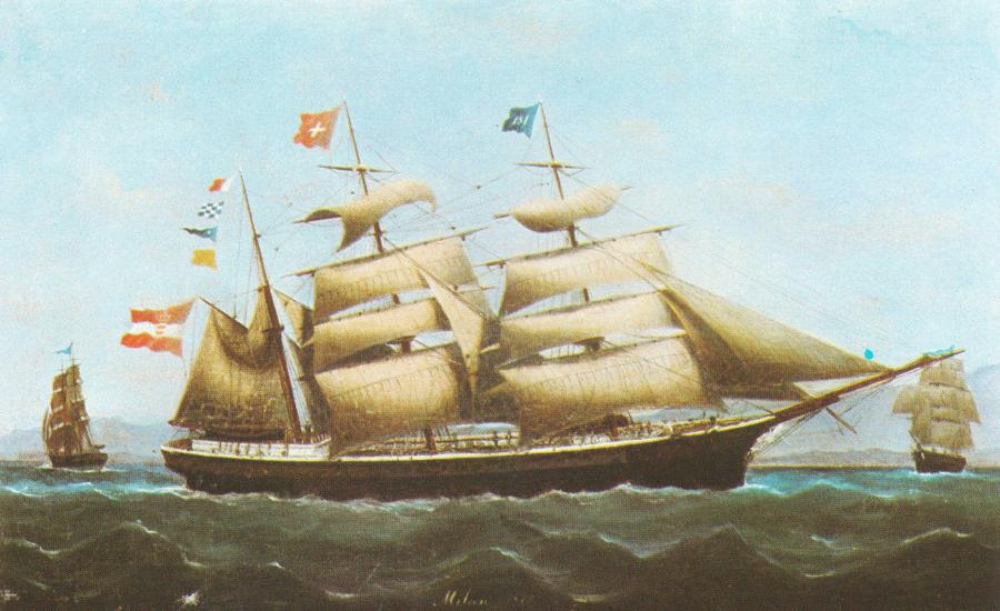 Barque Milan. Shipowner: Milinović brothers from Morinj, in 1875. Author of the painting: Bazilije Ivanković