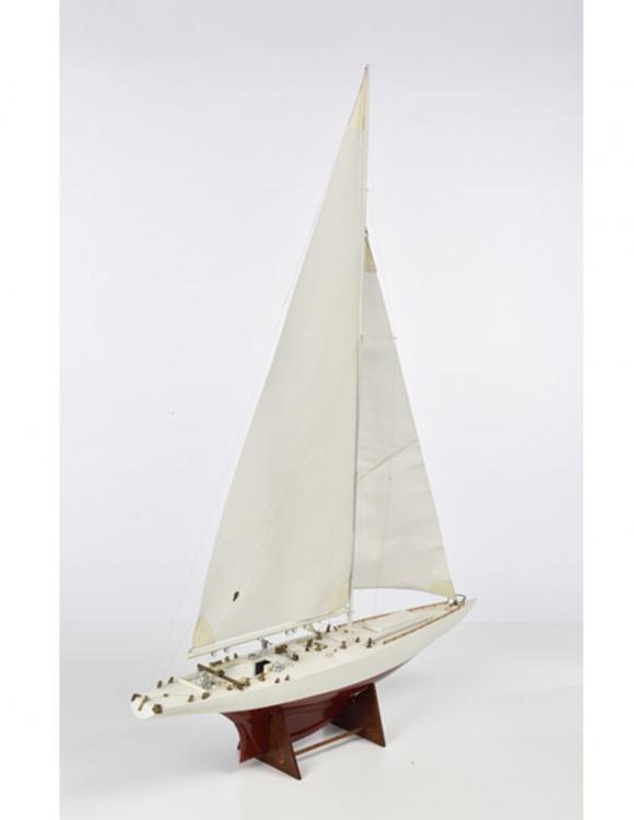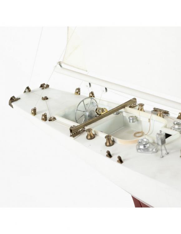 Constellation was designed by Olin J. Stephens, who had already designed America’s Cup winners such as the “J” Class Ranger (1937) and the Twelve Metre Class Columbia (1958). Constellation had a wooden hull and an overall sail area of around 1690 square metres. Skipper R.N. Bavier led Constellation to victory over Sovereign, the British contender.